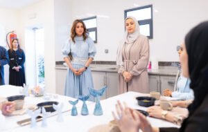 وشاهدت جلالتها عرضاً في ملعب المركز لأطفال مشاركين في تدريب على الكاراتيه، كما اطلعت في مشغل الحرف اليدوية على منتجات لسيدات مشاركات في برامج التمكين الذي تضمن صناعة وتشكيل الفخار، وفي قاعة “الكراميش” المخصصة للأطفال من عمر 3 إلى 6 سنوات، شاهدت جانباً من البرامج التي تُنفذ فيها للثقافة المالية والاجتماعية